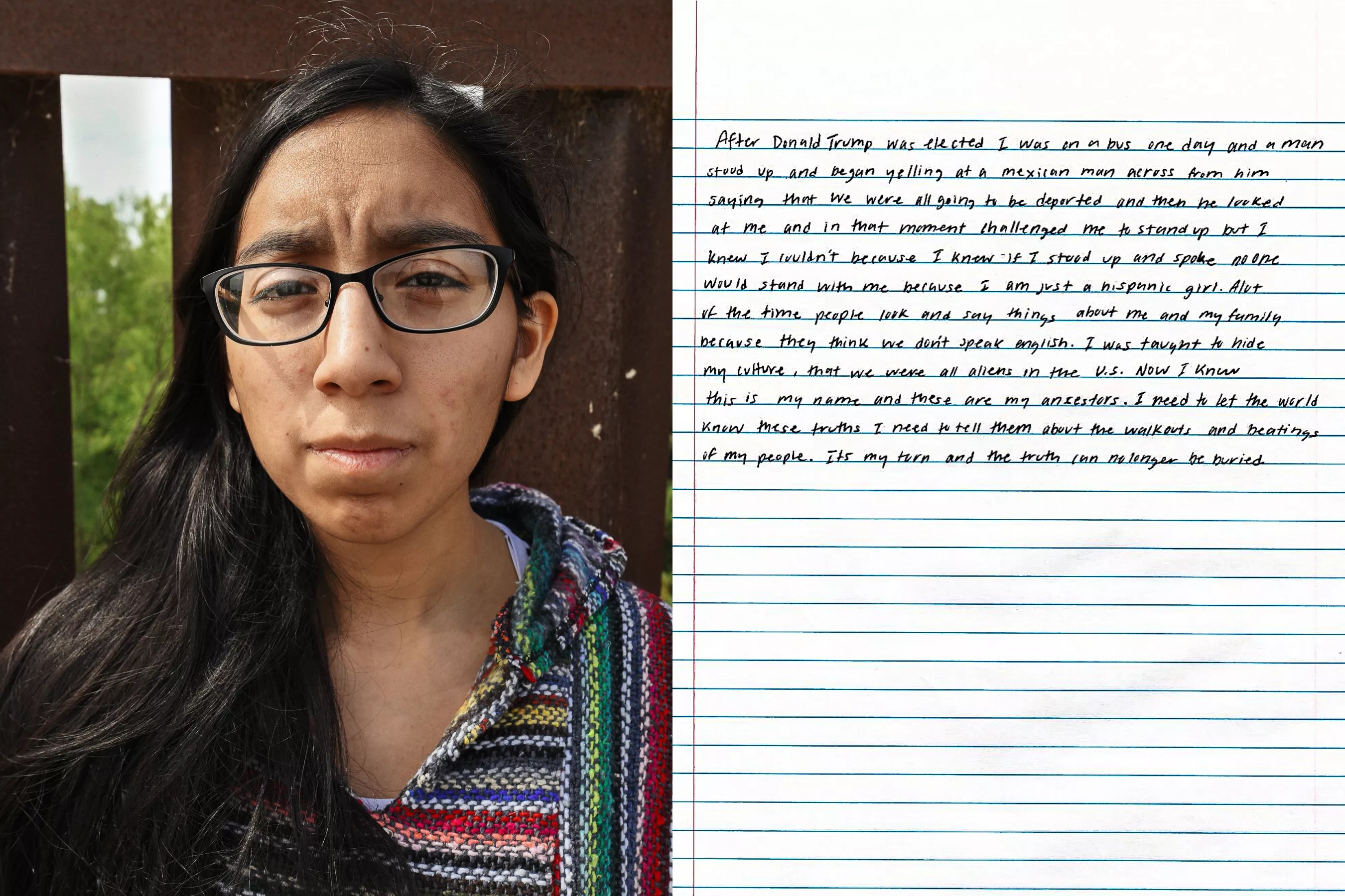 Gabrielle, a shy 17-year-old senior, joined the trip to become a voice for members of her extended family who remain in Mexico. She’s been afraid of public transportation since Trump’s election. She recalls the day she knew she had to join the trip in order to meet with other activists and learn how to stand up for herself. She was riding a bus home when a man stood up and began yelling that in Trump’s America, Mexicans will be sent back.