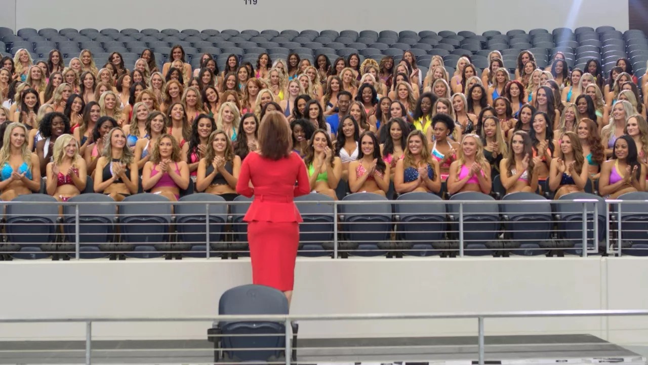 On Dallas Cowboys Cheerleaders: Making The Team, about 45 Dallas Cowboys Cheerleaders hopefuls enter training camp. Directors Kelli Finglass and Judy Trammell dwindle down the bunch to an ideal 36 by cutting a woman each week. During training camp, the women must learn dozens of fast-paced routines, get their weight checked every week, participate in a photo shoot to make sure they are camera-friendly and then participate in a mock interview to make sure they are media-friendly.