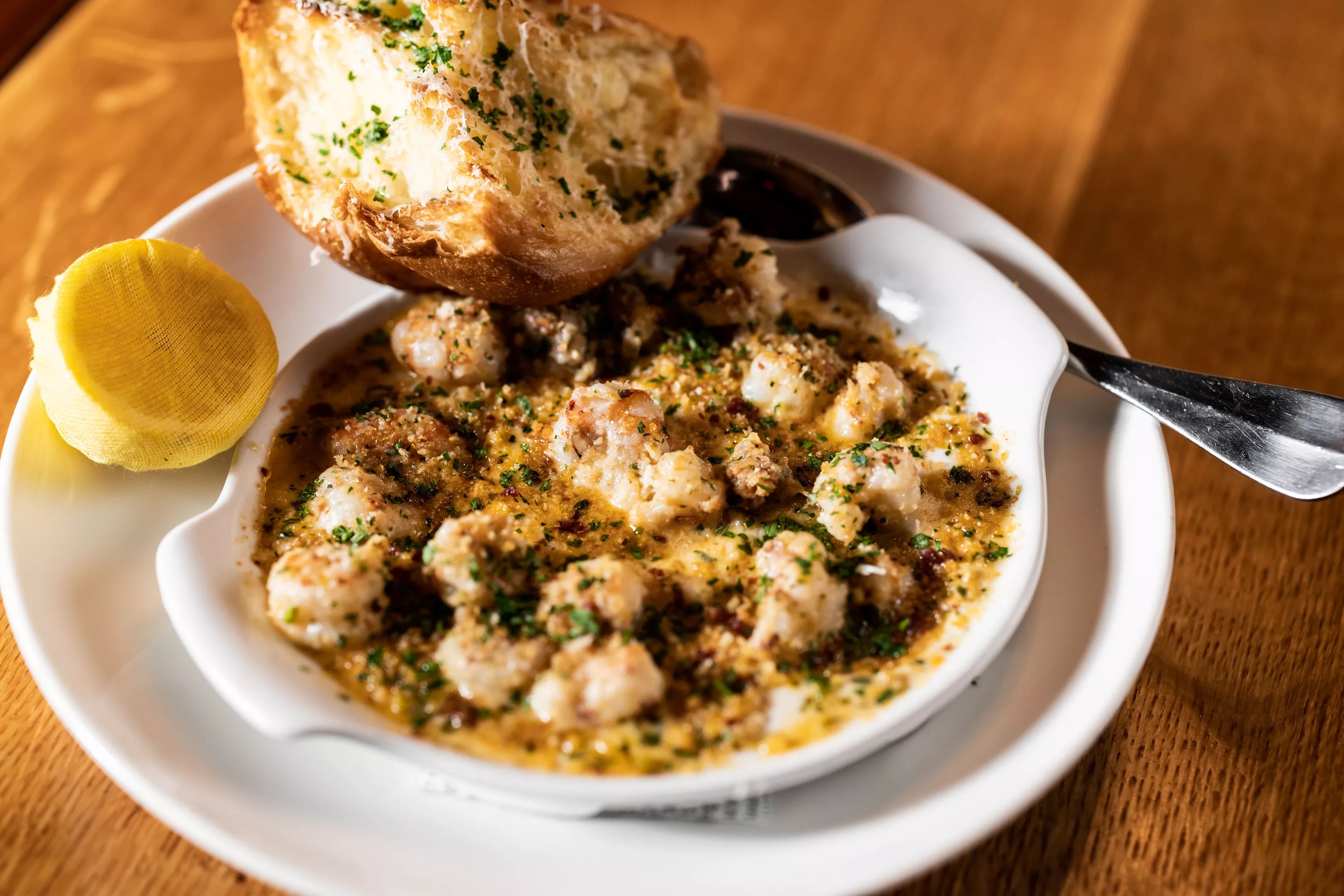 If you can stay away from steaks and chops, it’s possible to dine more affordably at Brass Ram, although affordable is a relative term. Naturally, there are meatballs ($19), here dressed with a blue cheese frisée salad. The rock shrimp casino ($27) get basted in butter and a Parmesan gremolata that had us sopping up the sauce with bread.