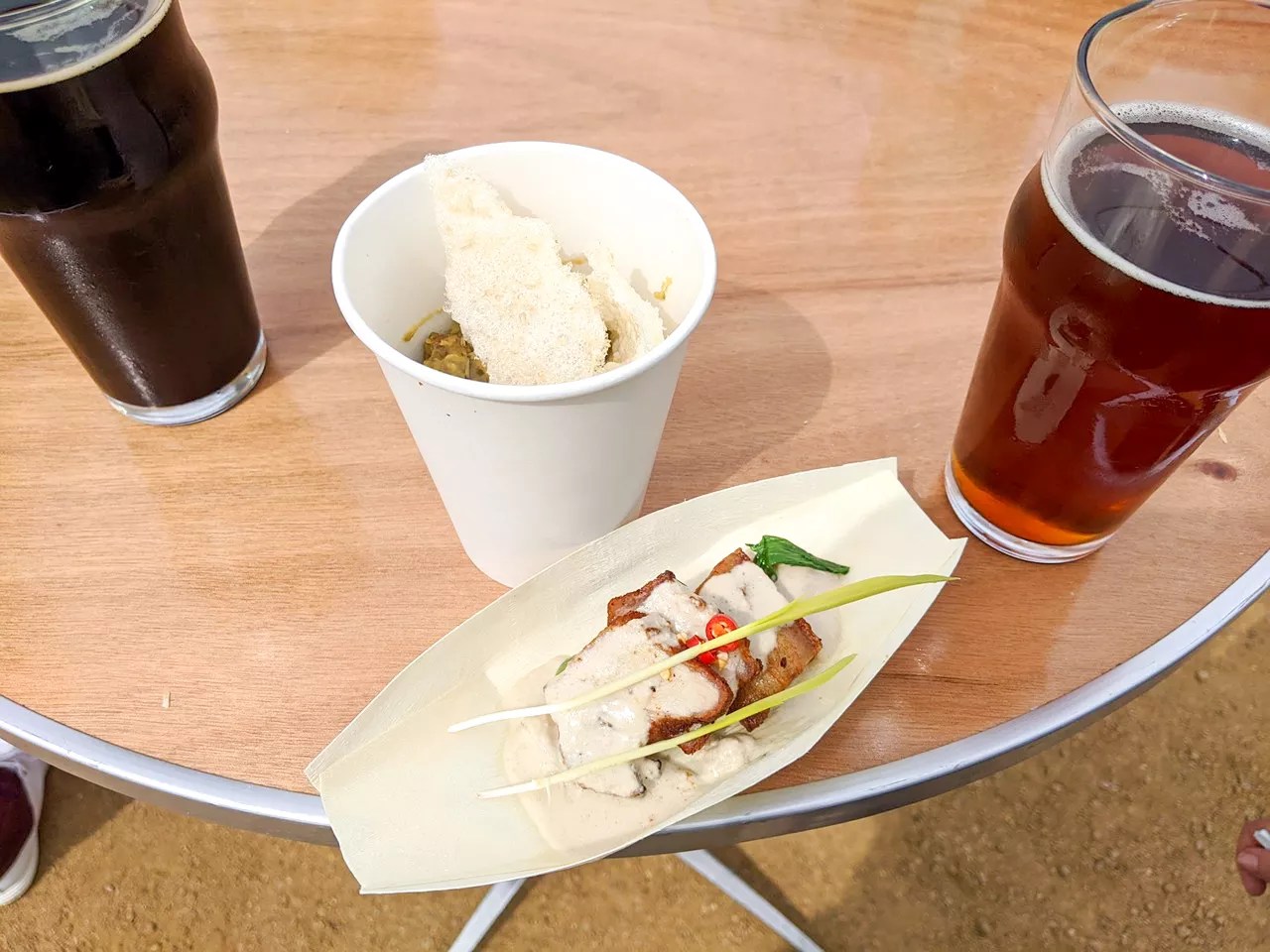 We arrived promptly at noon, the official start time for the festival, to discover lines were already growing across Four Corners’ taproom and outdoor seating areas. At 12:05 p.m., I joined my first line – for Not Your Lola’s, one of the city’s most popular pop-up food businesses – with beer in hand. The beer was finished by the time I got to the front of the line a half-hour later.
