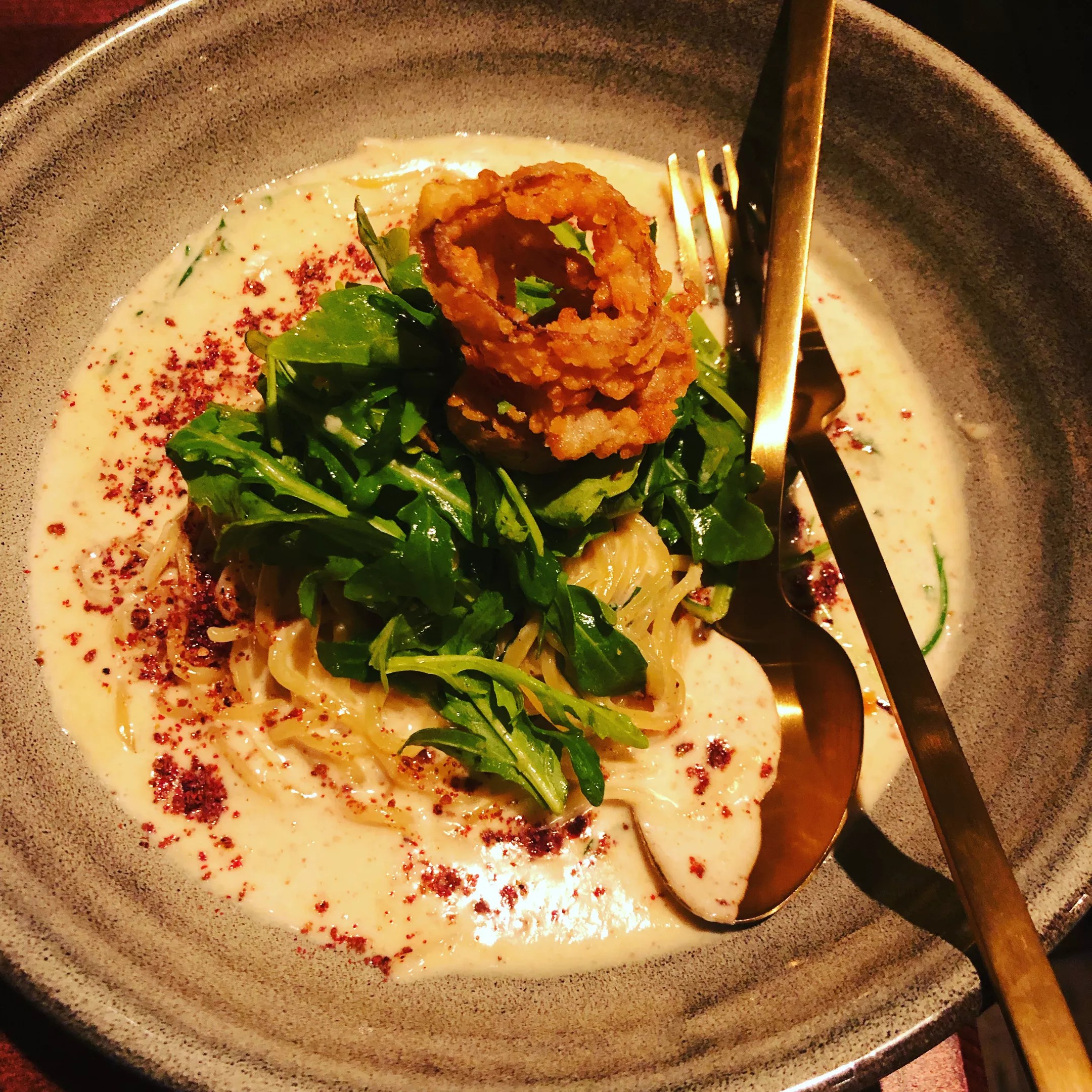 When ordering food you’ll want to have about three to five courses in mind. It’s better to order them all at once, that way, the kitchen can bring another course out after you finish one. Like Apothecary, the plates are small in size and designed for sharing and savoring.