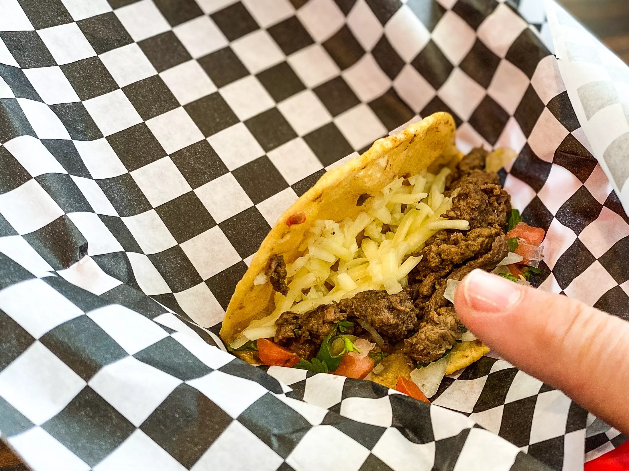 Customers pick a protein of ground beef, steak, chicken, ground turkey or plant-based. The single tacos start at about $4.50, while the two-pack and Chi Town Super Taco (a larger taco on grilled pita) cost a bit more at $8.99 and $6.99, respectively.