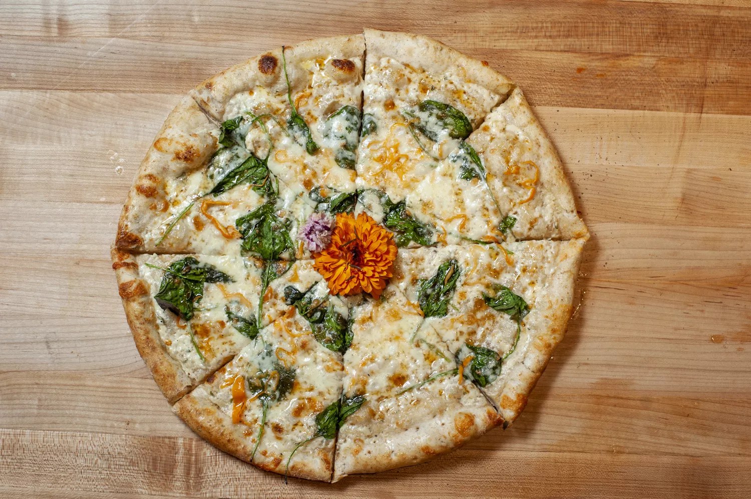 The dough is just the beginning, and these pizzas are begging to be tried. The Angry Bee is an Alfredo pizza with habanero-infused glitter honey, spinach, shaved habaneros and an edible flower. The vegetarian Keep Calm and Curry On pizza has a red curry base topped with Vector cheese blend, tempura-battered fried tofu tossed in spicy agave, cilantro, chevre and a side of house tzatziki.