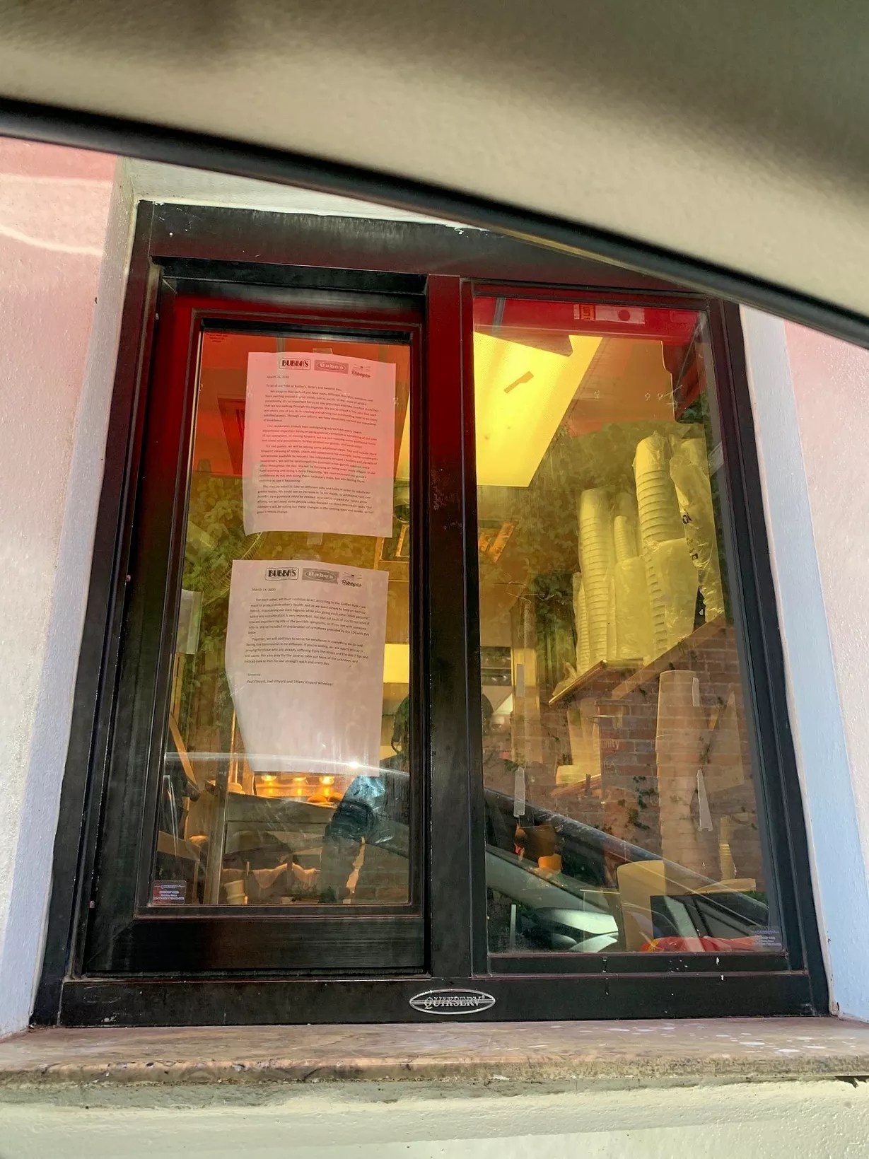 A note to customers from the owners taped up in the drive-thru.