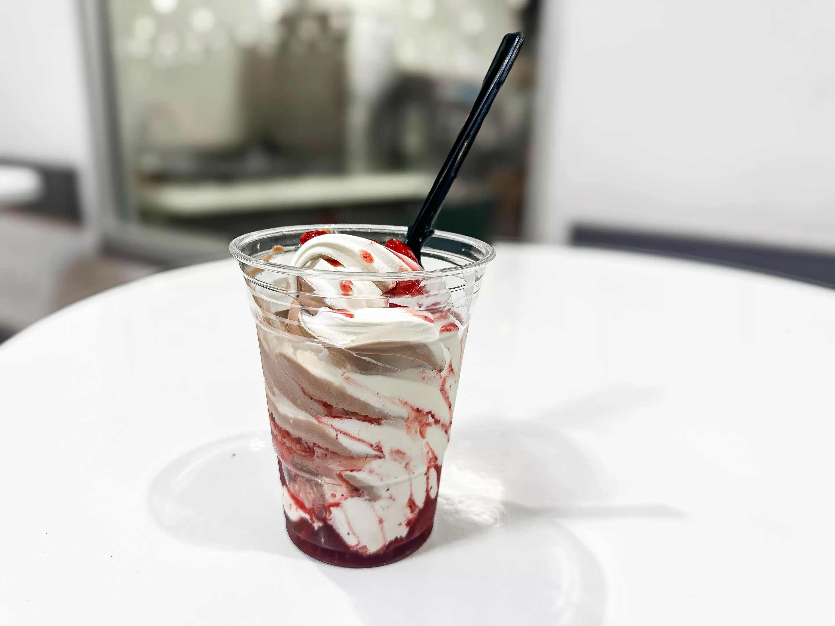 After our dizzying lap, we ultimately concluded that dessert was a must (for the story, of course). We shared a chocolate swirl ice cream sundae for $2.79, complete with syrup that actually had real strawberries in it.