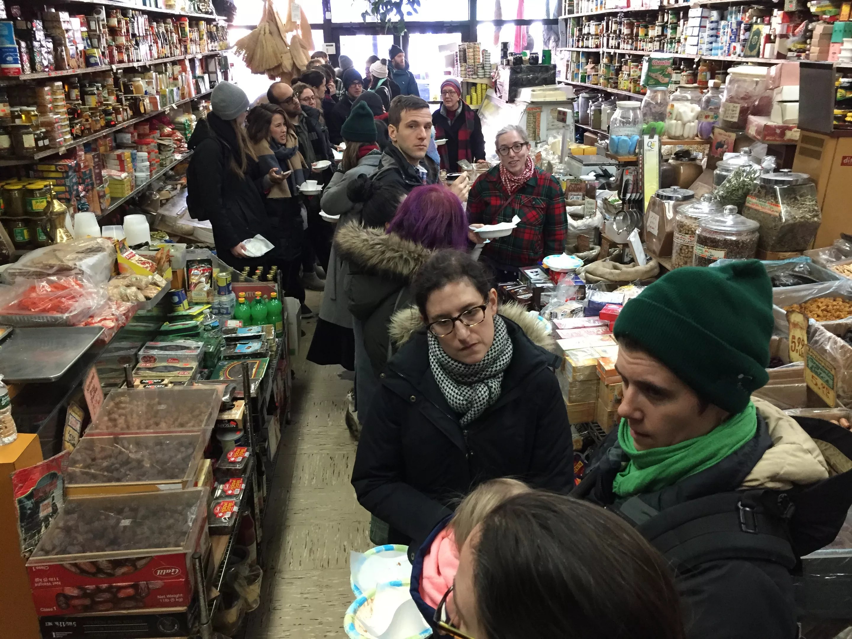 Food-lovers fill Oriental Pastry and Grocery during one of Breaking Bread’s food tours in New York City.