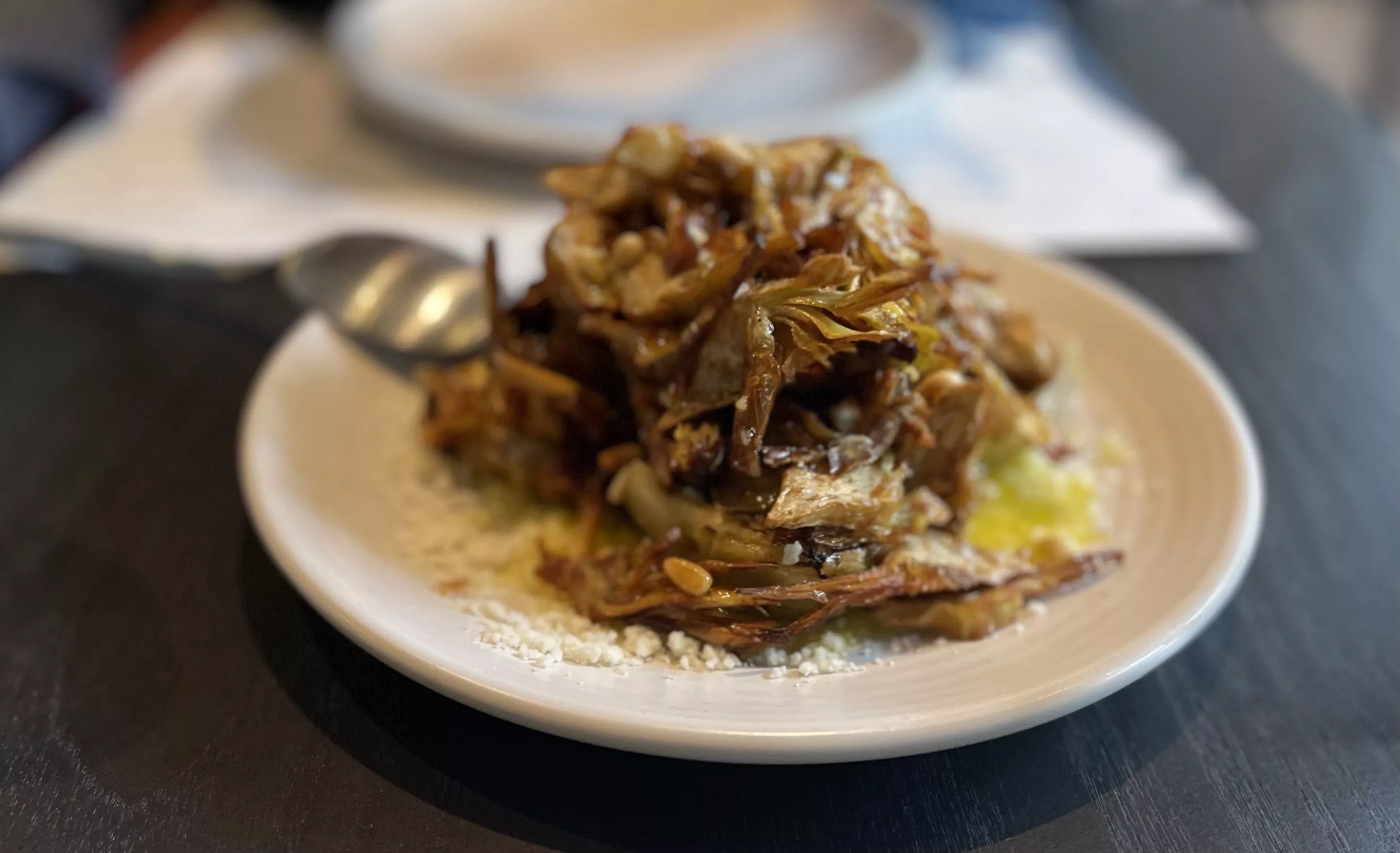 The carciofi arrostiti is charred artichoke hearts and crispy baby artichokes mixed with lemon, pine nuts, Parmesan and olive oil, and is a great way to start your meal with plenty to share. Little gems Caesar salad. Angie Quebedeaux