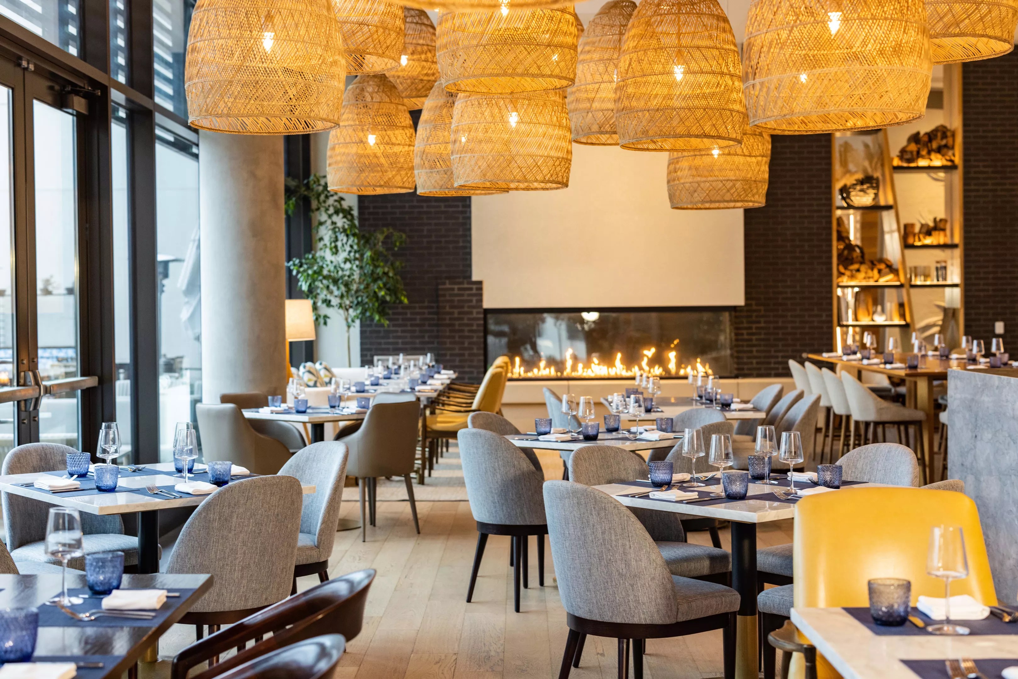 If we were dining on a patio in Santorini, we might partake in views of the azure Mediterranean Sea with mountains at our back while enjoying our meal. At Anise, the views from the floor-to-ceiling windows may not rise to that level but are stunning nevertheless, with lush lawns and a sparkling pool a fitting substitute. Turn your gaze inside, and Anise’s dining room is just as calming. Warm woods dominate, punctuated with splashes of blues and greens that are clearly inspired by the region.