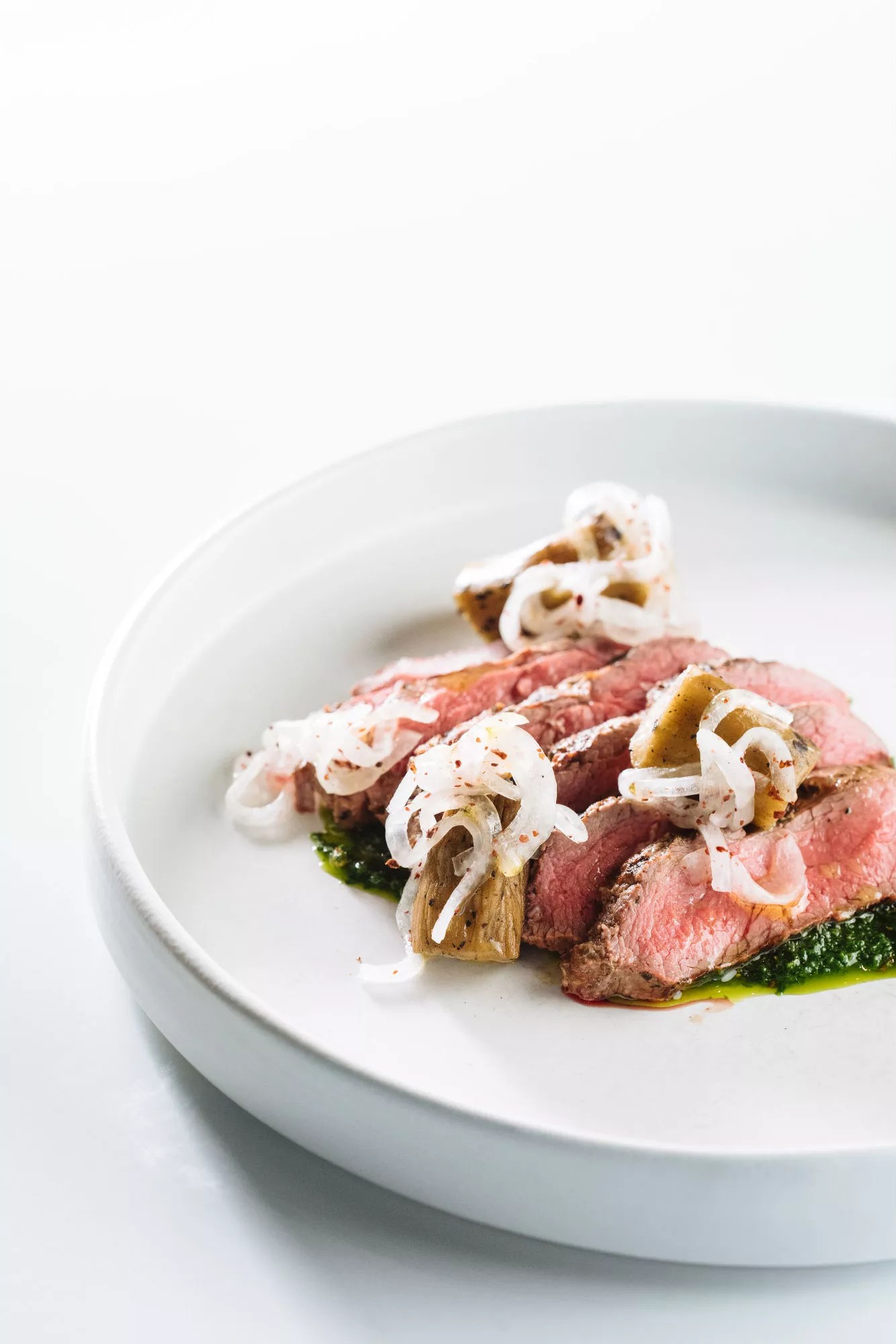 Uygur’s Turkish side shows again in a lamb sirloin main dish ($28), plated with sumac-coated red onions (just like my mother’s) and divinely tender, smoky pieces of skinny eggplant. It’s better to mix everything together: Top each bite of lamb with some strings of onion.