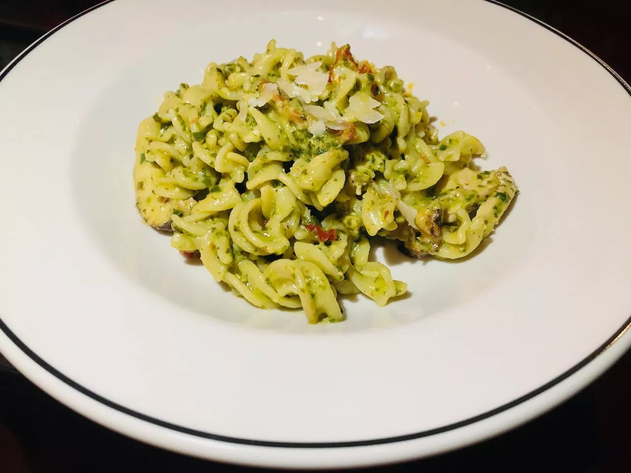 Pesto fusilli with rosemary chicken and sundried tomatoes