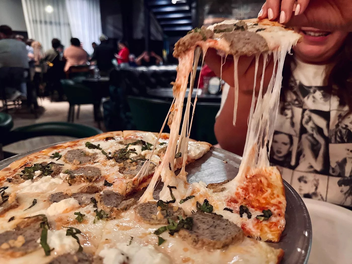 Bankhead Brewpub, 13090 Bee St. Bankhead Brewpub opened in Farmers Branch in December 2023. We committed a cardinal sin by not visiting until February 2025. The Prohibition-era-themed brewpub draws quite the crowd, with waitlists that can stretch up to two hours, but the Godfather Pizza’s impeccable cheese pull is worth it. The wood-fired thin crust is mounted with Parmesan, ricotta, sliced house-made meatballs, garlic and basil. Pair it with Bankhead’s runny, yet potent ranch for a creamy, dilly and comforting bite. – Desiree Gutierrez