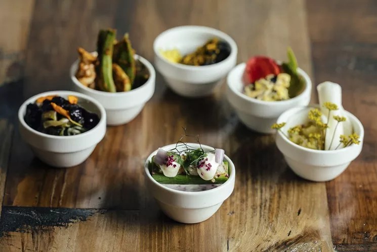 1. Revolver Taco Lounge. How can a new restaurant open in Deep Ellum and make the other eateries in that neighborhood – in that neighborhood – feel so uncool? How can one business open and make all the other spots on the block feel like they’re missing an extra burst of energy? That’s Revolver Taco Lounge, home of frog-leg curry tacos, scallop and raspberry tacos, a cabrito taco the size of your face, and tacos with wagyu beef tongue or octopus. We could keep listing, but what makes Revolver mind-blowing is the backroom, Purepecha, where Regino Rojas, Hugo Galvan and their crew serve seven-course fine-dining tasting menus that rival any meal in Dallas in an intimate space with a private kitchen. Revolver is two restaurants in one. Separately, they’re excellent. Together, they’re revolutionary.