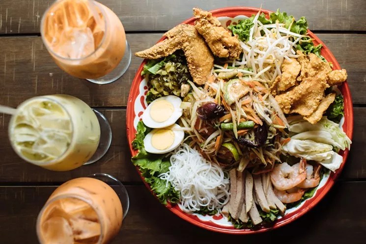 5. Too Thai Street Eats. Too Thai is a first for the Dallas area, something almost no other restaurant on this list can claim. This Carrollton restaurant focuses on Thai market and street foods, branching out from drunken noodles and spring rolls to paint a fuller picture of the culinary diversity of the streets of Bangkok. Bring a group and share a hot pot soup brimming with seafood, try an ultra-spicy papaya salad with fermented fish sauce and lime wedges, or try a mussel-studded omelet so bubbly-crisp it will blow your mind. There are smells, textures and tastes here like nothing else in the region. And in case that sounds scary, there are some pretty legit chicken wings, too.