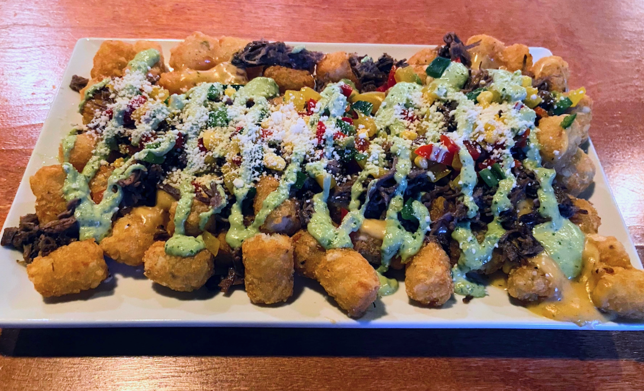 Appetizers include hot broccoli, flash fried and sprinkled with garlic, Parmesan and hot pepper flakes. The deviled eggs ($7) come topped with candied pork belly to give them a sweet crunch, and a squirt of Sriracha to add a touch of heat. The loaded tots ($12) are enough for full table of friends, served on a large tray and loaded with pulled brisket, a jalapeño corn relish with freshly chopped peppers, queso and jalapeño-flavored crema.
