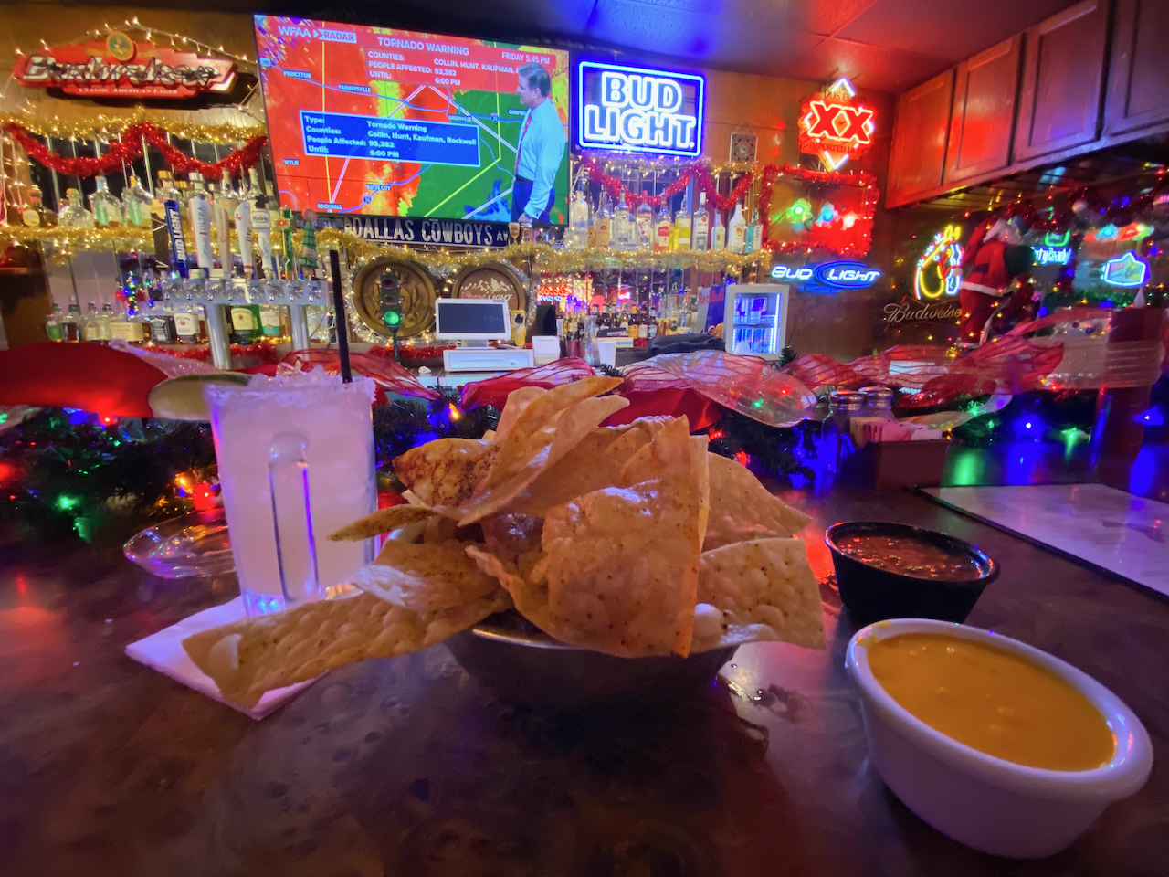 We sat at the bar and watched a sleeves-down Pete Delkus track a nasty storm across North Texas. A lady wearing a beanie cap sat near us and smoked a ciggie while she waited for her to-go order. Nearby tables and chairs were similar to what my grandparents had in the early ’80s; with a light whiff of smoke rolling across the room, it was all fascinatingly nostalgic. Can you see the kaleidoscope of crazy? Lauren Drewes Daniels