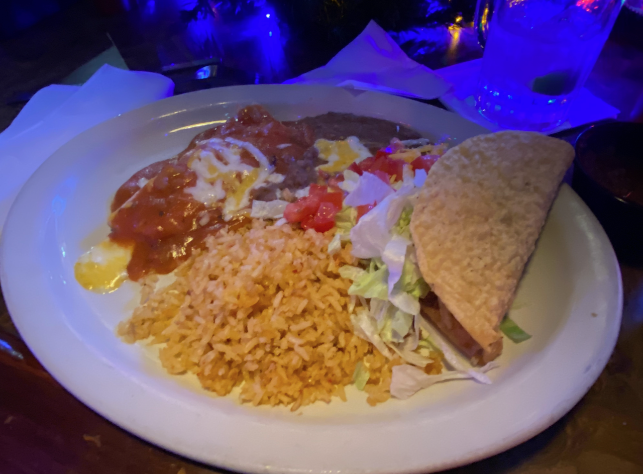 For the mains, we went with a standard Tex-Mex plate; one cheese enchilada and one chile relleno with rice and beans. Clearly, the cheese sauce is an all-purpose weighted blanket here. Two bites of everything on the plate was more than enough. A basic taco and enchilada plate is .95. Lauren Drewes Daniels