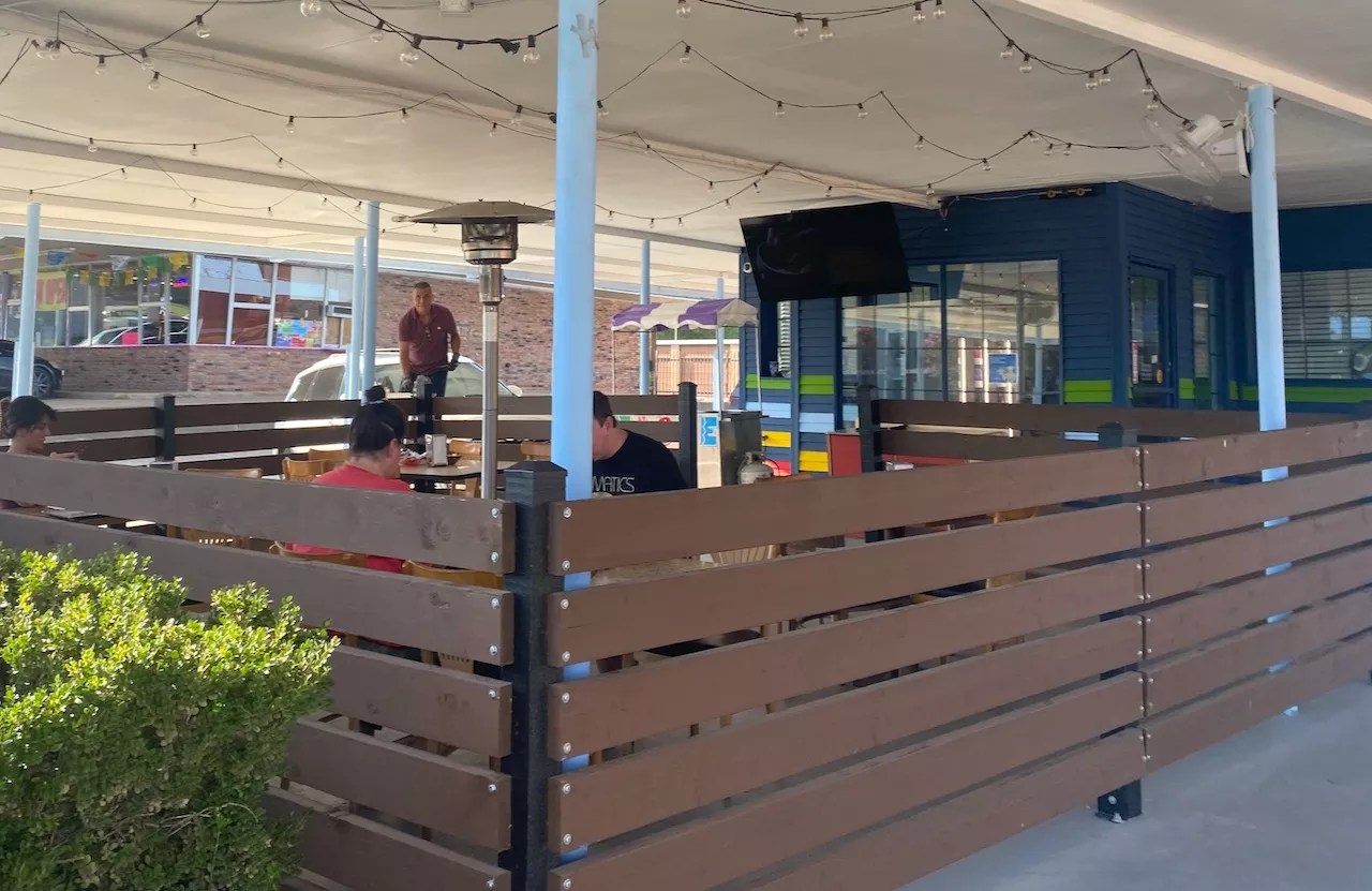 There are about six tables inside, with a couple of TVs to watch a game, plus this patio for dining outside.