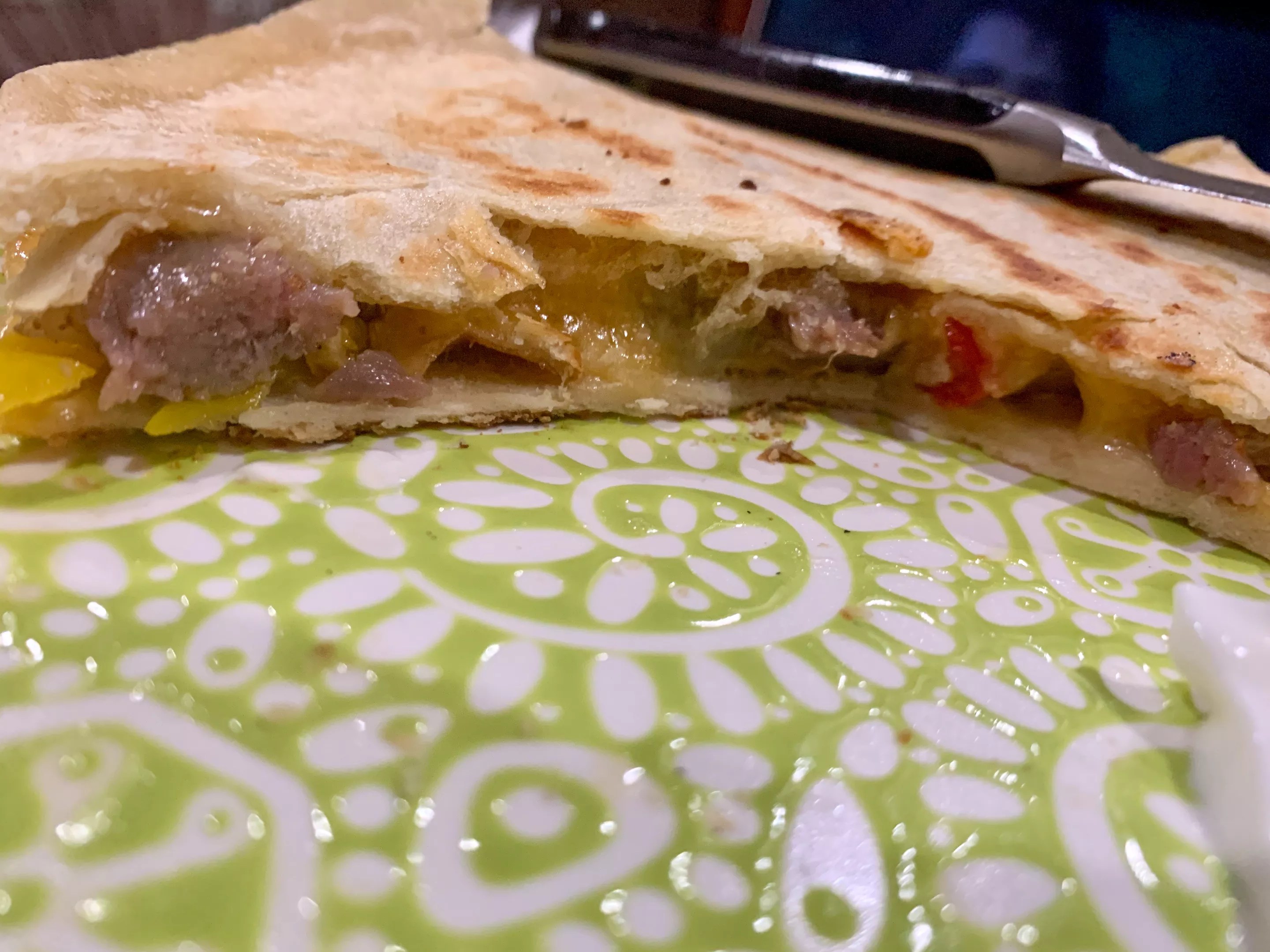 I bartered for the fresh flour tortillas and used leftover steak in this quesadilla last week.