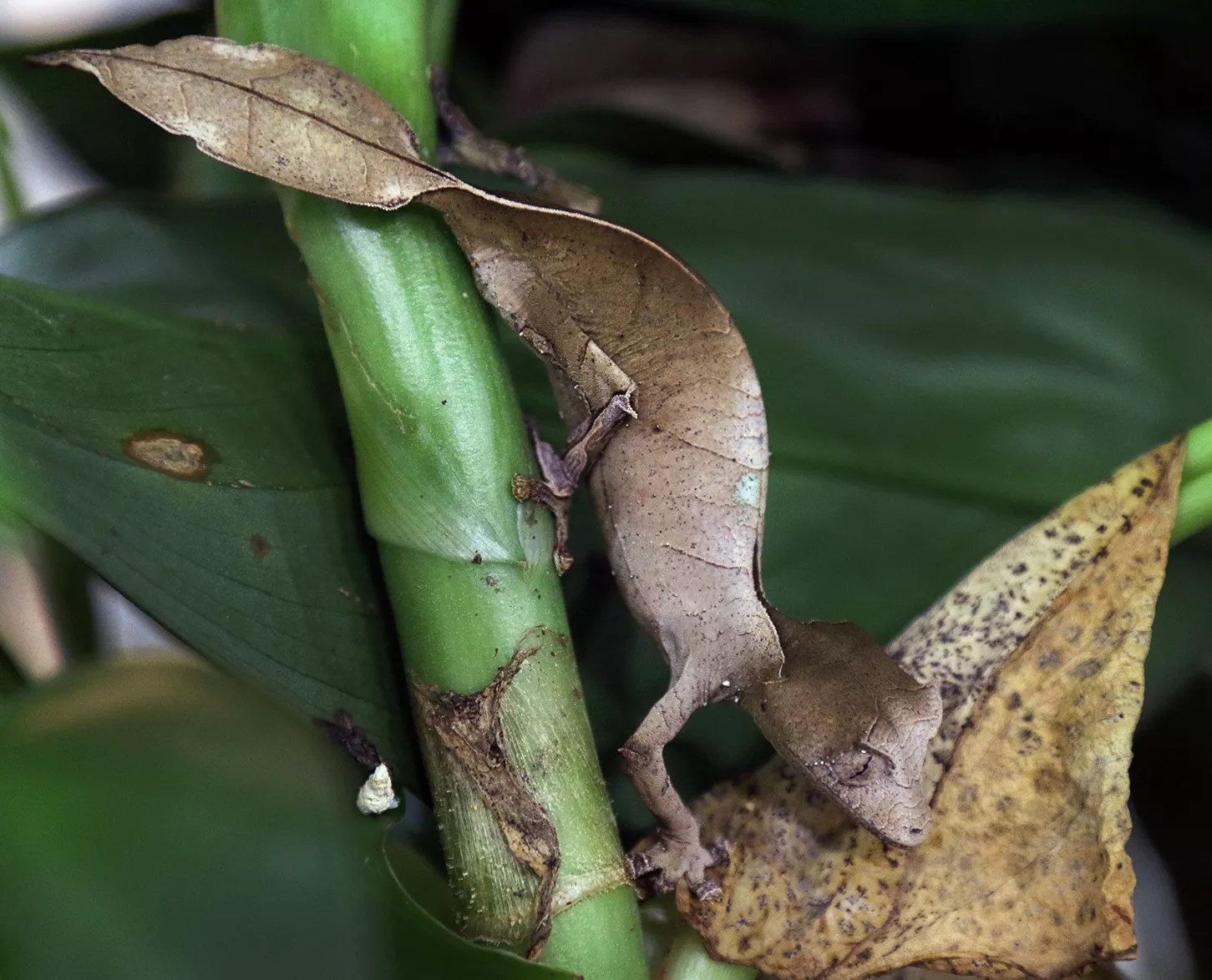 The Dallas Zoo breeds two species of leaf-tailed geckos, the mossy leaf-tailed gecko and more interestingly named satanic leaf-tailed. Both are native to Madagascar and have the ability to convincingly mimic leaves and bark.