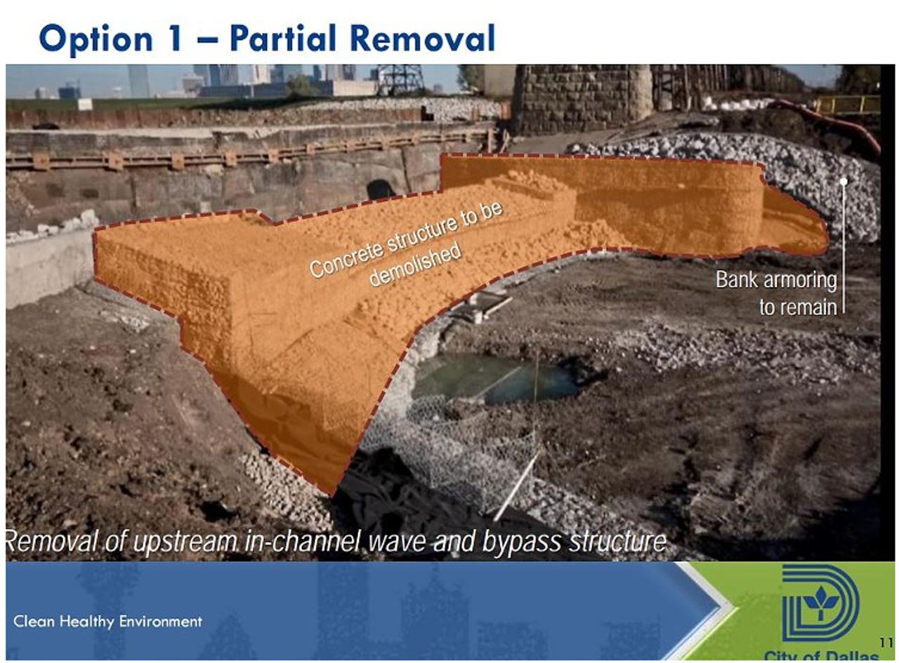 Joe Pappalardo reports that the City Council decided to remove the bare minimum amount necessary of concrete and steel from the fake kayak rapids the city built in the Trinity River six years ago. In other words, it’s doing just enough to get the city out of legal trouble with the U.S. Army Corps of Engineers.