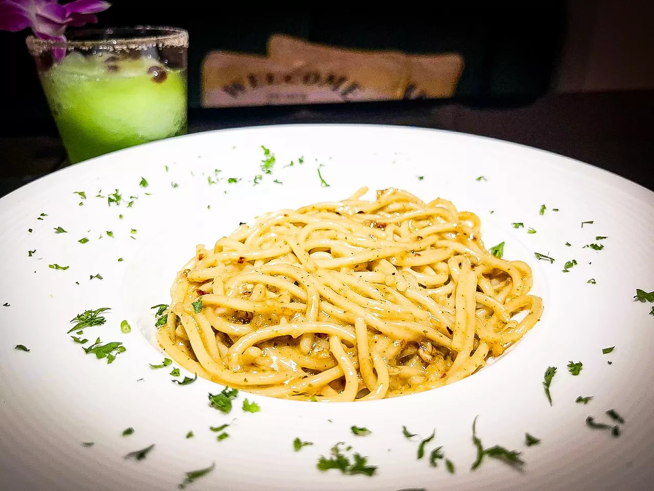 Even straightforward plates like the tomato burrata salad, artfully arranged into a floral pattern with basil leaves and cherry tomatoes, and the garlic pasta, glazed in shiny garlic butter and sprinkled with herbs, serve as perfect models for the camera. Burgers are garnished with mini pickles, steaks are topped with honeycomb-shaped ornaments and lamb chops are circled by fresh rosemary sprigs. Finish off with the dessert flight, a sampler tower of desserts crowned with a pink cloud of cotton candy, but not before capturing the visual feat on your phone.