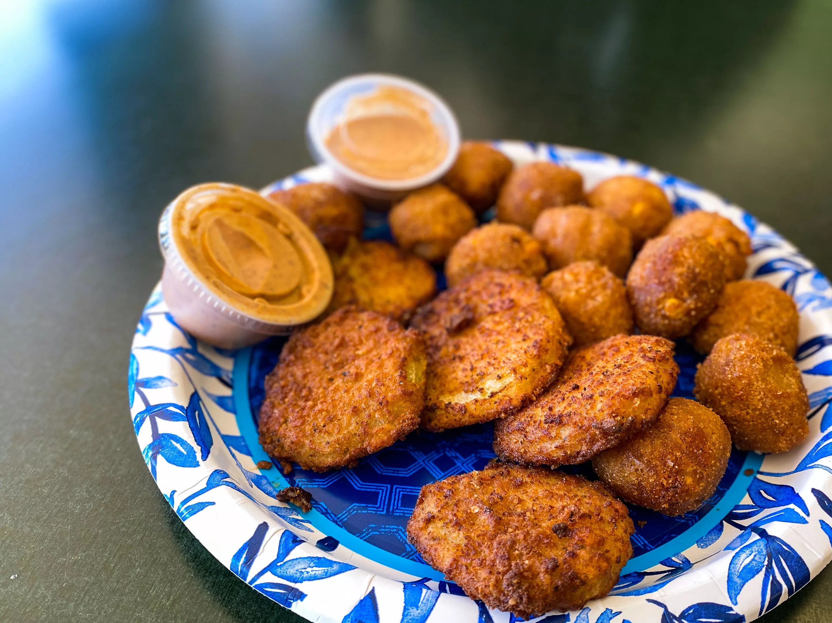 Still, he persisted and is around to tell the tale, though he told us that every day he thinks about closing up shop to relieve his burden. He said this with the infectious laughter that peppers all of his talk, however, so we assumed he was kidding. We’re glad for that because Cajun cuisine is few and far between in our neck of the woods, we ordered a couple of po’boys, some fried green tomatoes and hush puppies, and of course, some beignets to finish off the meal.