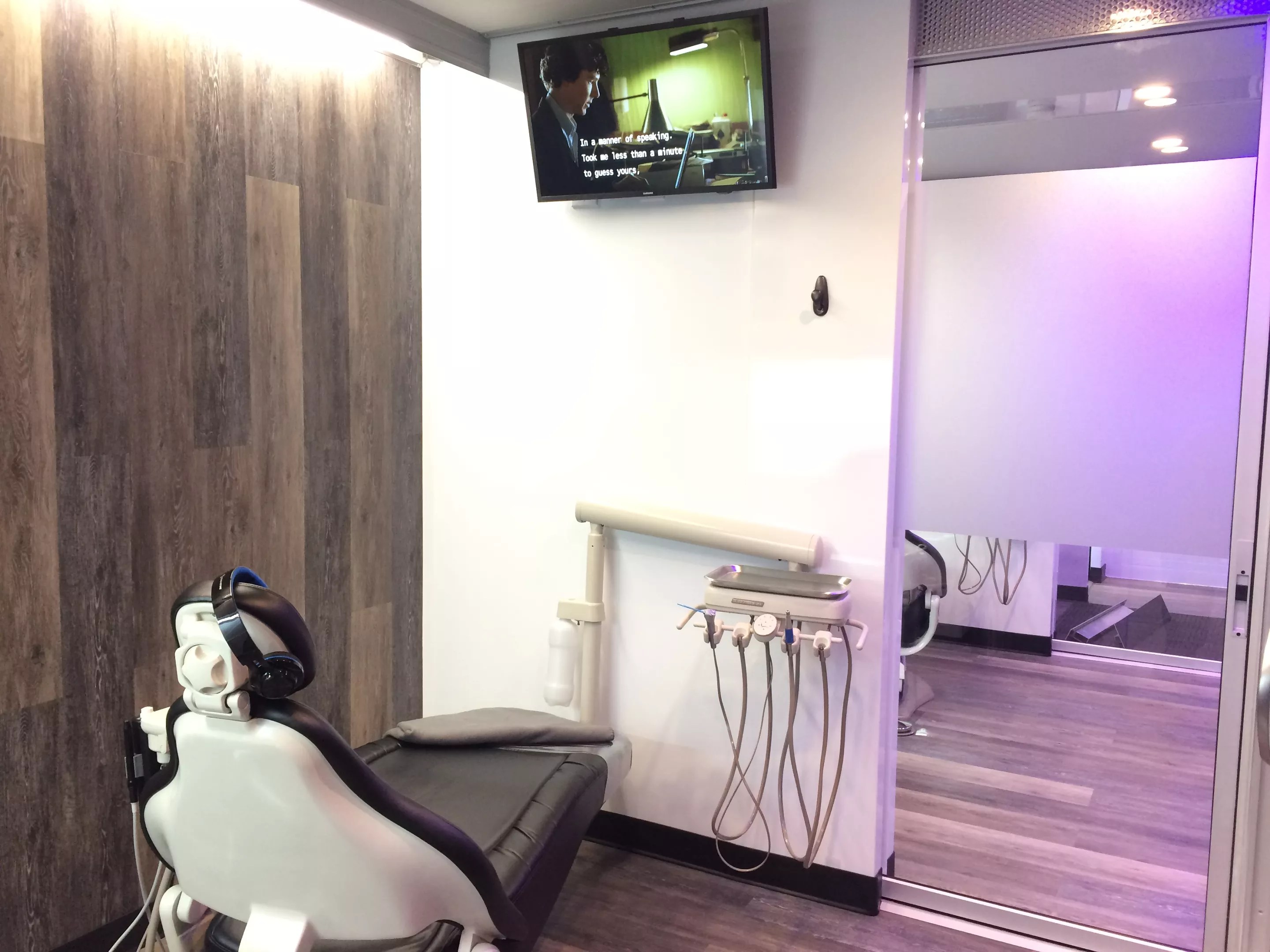 The truck is equipped to serve two to three patients a time, and it looks pretty much like your standard modern-day dentist office.